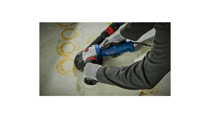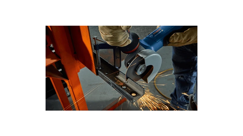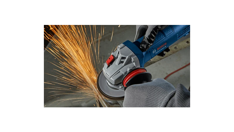 This 4-1/2″ ergonomic angle grinder features a narrow grip zone for all-day comfort and control, combined with a powerful 10-amp motor. The Bosch GWS10-450P angle grinder delivers results, producing up to 11,000 no-load rpm for maximum productivity in grinding and cutting applications. The tool weighs 4.6 lbs. It features a multi-grip paddle switch, which provides increased grip options for better ergonomics, comfort and control. Equipped with epoxy-coated field windings, double-sealed bearings and direct-motor cooling, this grinder is built for a longer tool life. It features spiral bevel gears for smooth transmission of power. For added convenience, it has an anti-vibration side handle and an adjustable tool-free guard with multiple fixed-adjustment settings to allow the user to position the guard in a variety of working angles. It has an updated gearhead mounting collar, which is now compatible with all Bosch metal and concrete guards.