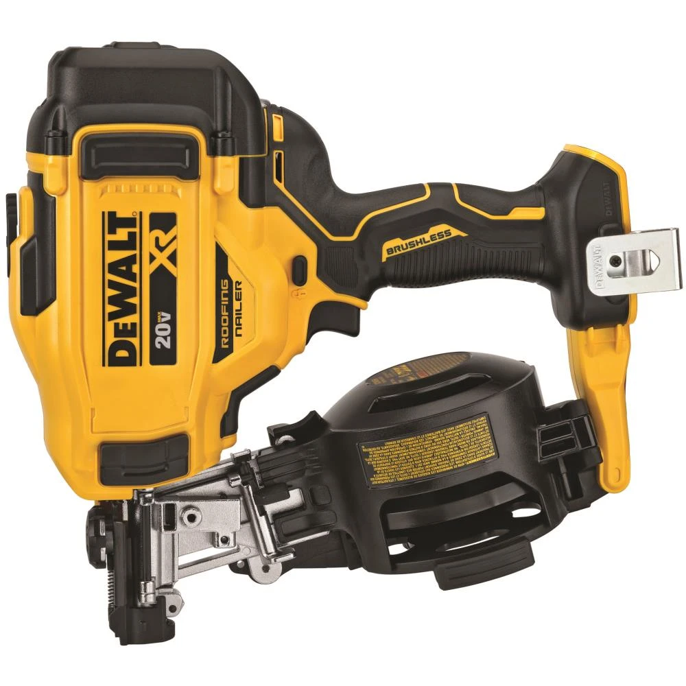 The 20V MAX 15° Cordless Coil Roofing Nailer delivers cordless convenience ideal for service repairs and small jobs. There are absolutely no hoses, compressors, or gas cartridges required. ItÕs 100% battery-powered so the pro can show up and get to work right away. The 20V MAX 15° Coil Roofing Nailer can drive the full range of roofing fasteners from 3/4″ to 1-3/4″. Get the job done quickly and efficiently with bump actuation mode and tool-free depth adjustment that provides precise nail placement.