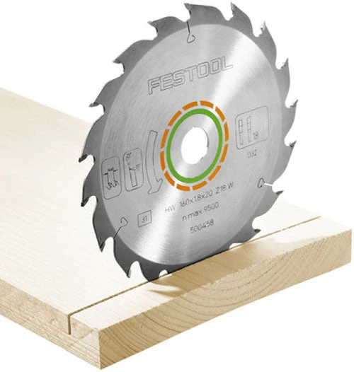 This 18-tooth saw blade is compatible with the HK 55 and HKC 55. For use with wooden materials, building panels, soft plastics, and coarse cuts. 160mm diameter, 1.8mm kerf.