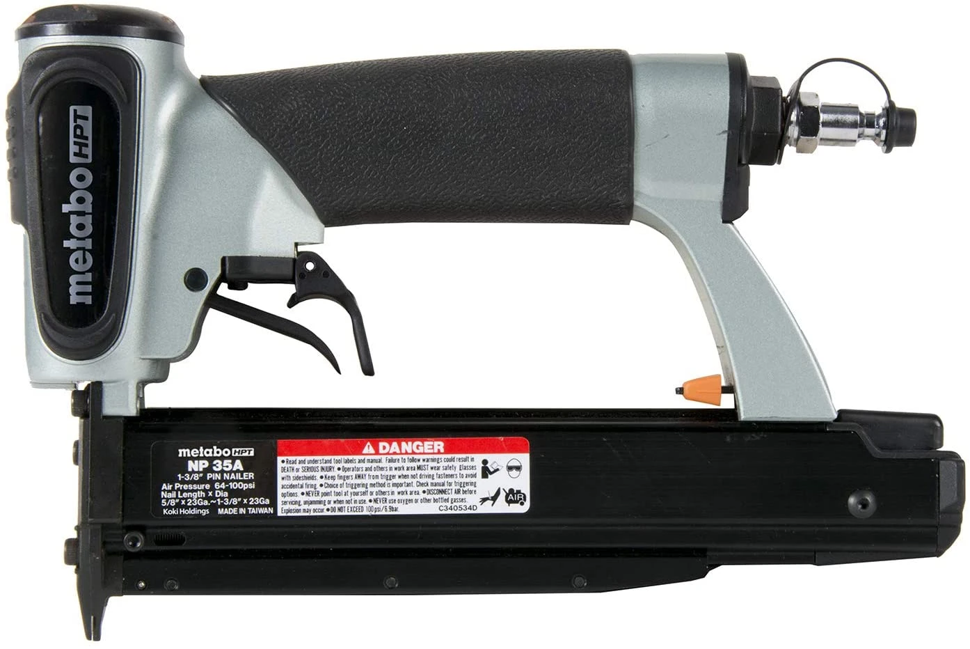 The Hitachi NP35A micro pin nailer fires 23-gauge headless pins which produce near invisible holes. The NP35A magazine automatically adjusts to 5/8″, 3/4″, 1″, 1-3/16″ and 1-3/8″ fastener lengths for use on a wide variety of projects.